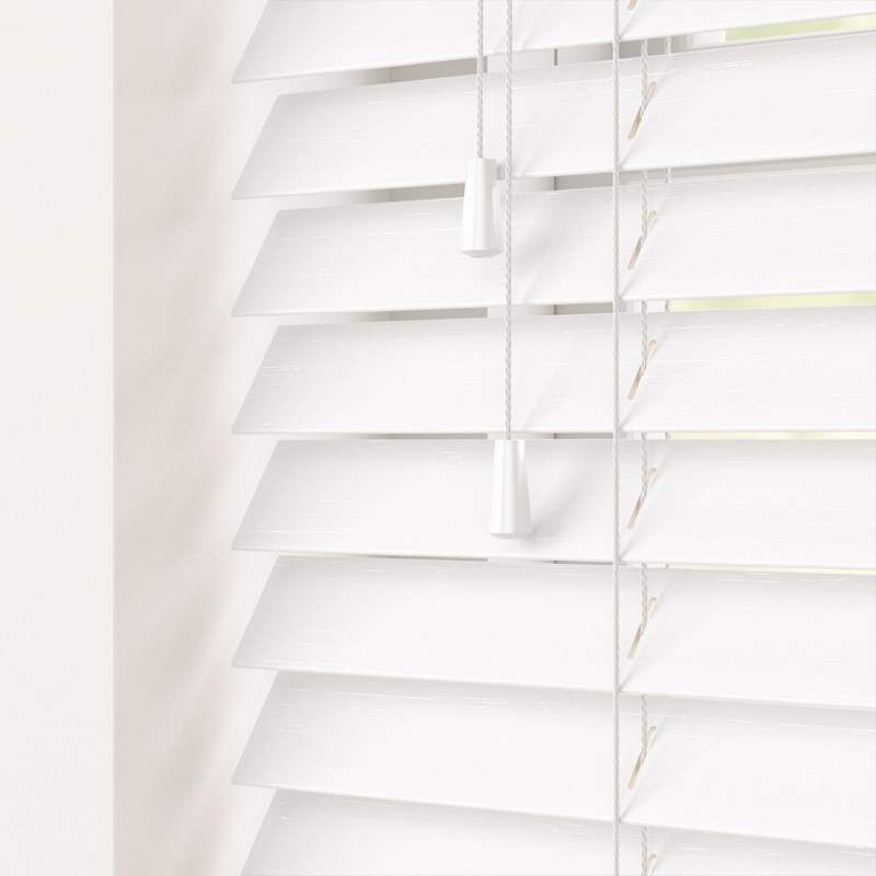 Decora 50mm real wood venetian blinds are available in a number of modern colours with the option of complimentary tapes and stained cut ends to match any décor.