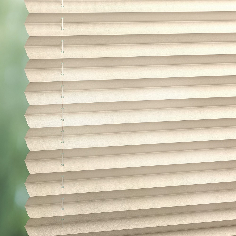All Luxaflex®PlissePleated Shades come with colour co-ordinated profiles and cords that run through punched holes in the fabric.