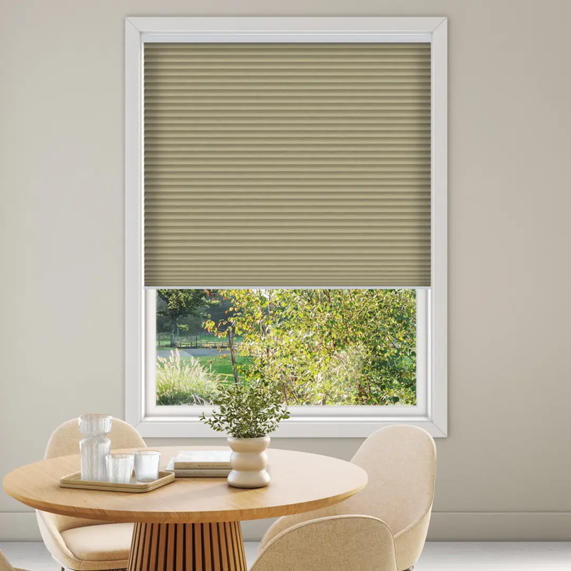 Luxaflex® Plisse Pleated Shades feature crisp pleated fabrics in an extensive selection of colours and styles, including lovely weaves, elegant patterns, and rich, appealing textures.