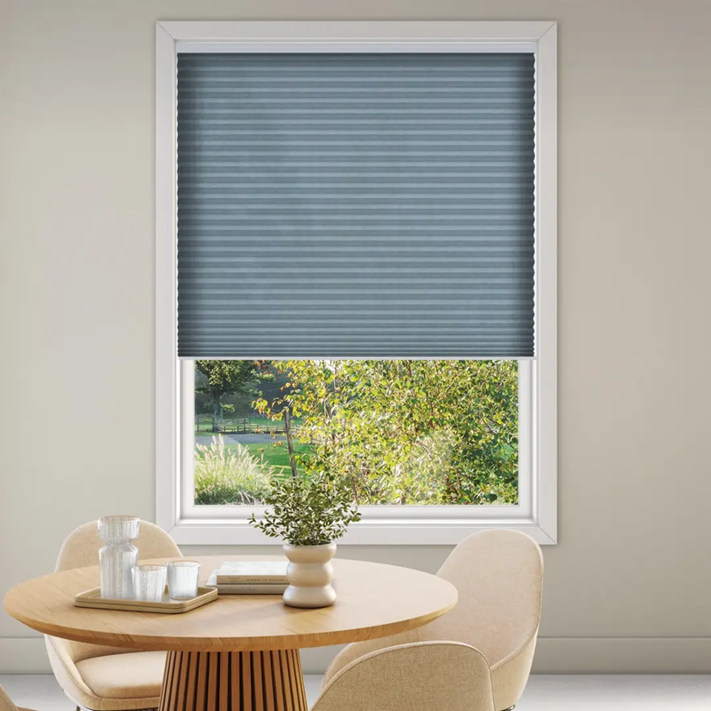 Luxaflex® Plisse Pleated Shades feature crisp pleated fabrics in an extensive selection of colours and styles, including lovely weaves, elegant patterns, and rich, appealing textures.